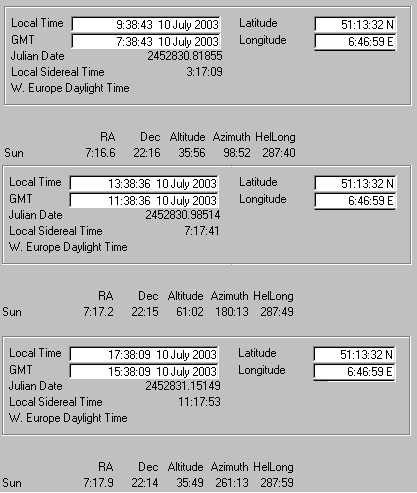 Azimuth (Mittag) = 98°52' + 81°10' = 180°2' = 261°13'