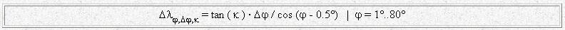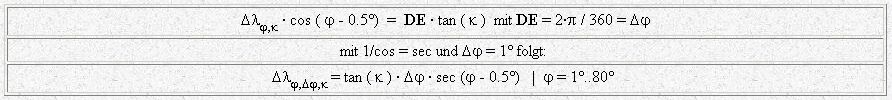 Da in den Breiten größer als 70° N | S etliche "Ausreißer" die über weite Strecken geradezu fabelhafte Übereinstimmung - im wahrsten Sinne des Wortes "sagenhafte" Übereinstimmung der Dee'schen Ergebnisse | Rechnungen mit denen der loxodromen Trigonometrie wie der hier versuchten Rekonstruktion - "stören": ?Flüchtigkeitsfehler, ?Rechenfehler, habe ich die vergleichenden Untersuchungen sowohl auf die Breiten von 1° bis 80° als auch auf die Breiten allein von 1° bis 70° erstreckt.