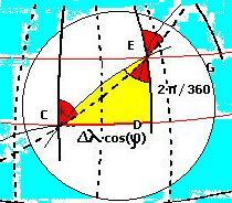 Wenn ich z.B. vom 20. Breitengrad im 1.Rhumb Nord ten oosten - der flandrischen Windrose entsprechend - zum 21. Breitengrad "hinauf"segele, - wie groß ist dann die gesegelte östliche Längendifferenz? Dee's Canon gibt die Antwort: