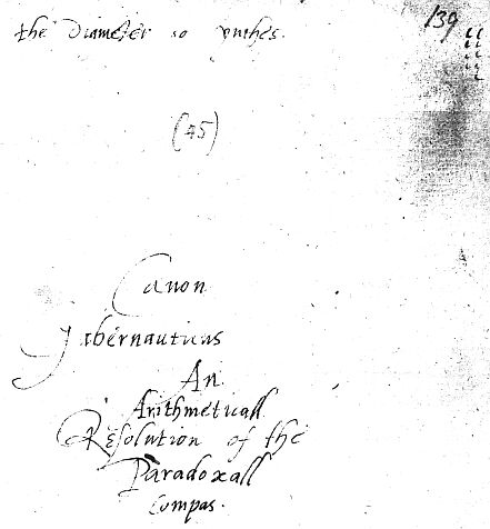 John Dee - Canon Gubernauticus An Arithmeticall Resolution of the Paradoxall Compas (1557) Ashmolean Manuskript 242 fols. 139r-154v (Bodleiana, University Oxford) |
