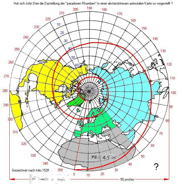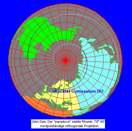 Die Darstellungsform der nordpolständigen orthogonalen Projektion dürfte nicht in seinem Interesse gelegen haben, da in ihr die äquatornahen Kurse keine sinnvolle Abbildung finden: